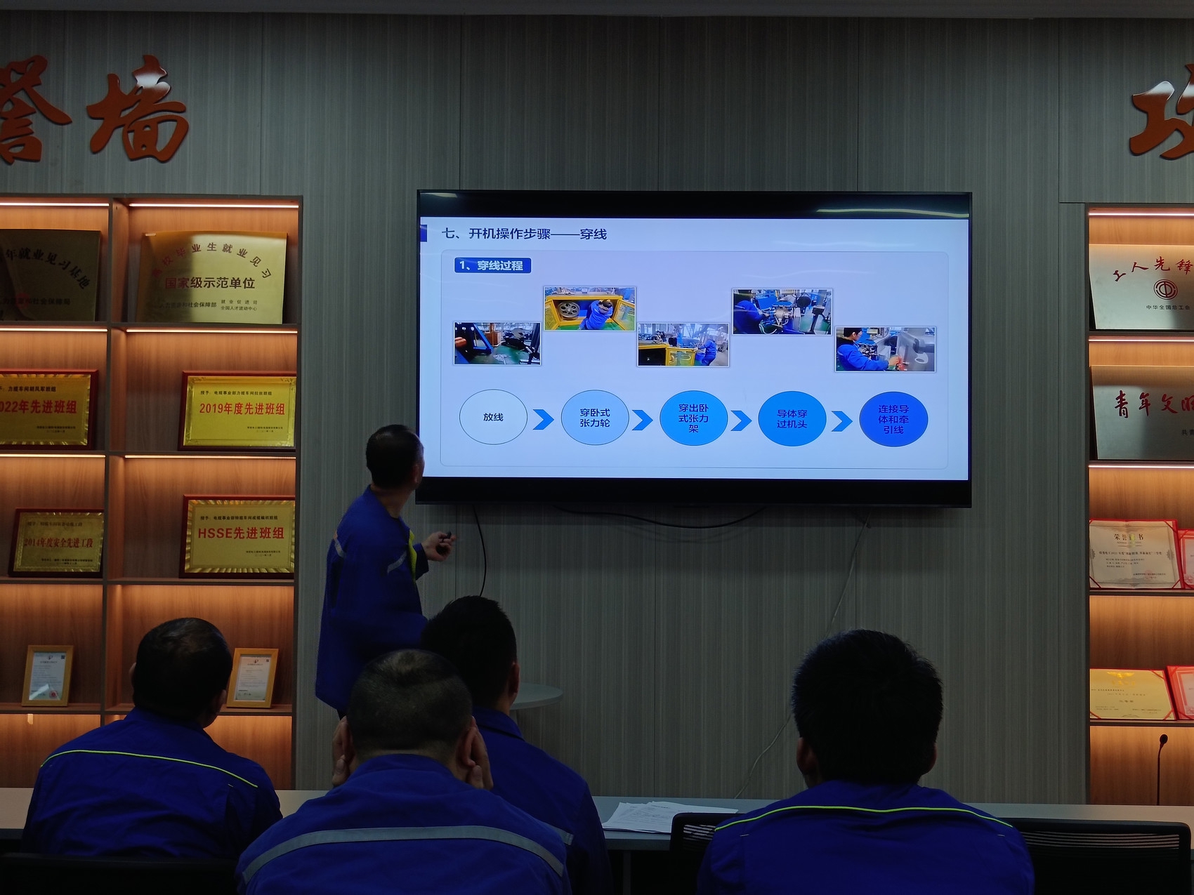 “注意机台操作规范,确保安全生产,进入车间要注意规范着装和文明用语……”4月29日下午3点,特变电工(德阳)电缆股份有限公司,一场“全员素养提升标准”培训课准时在“见习学员之家”开讲。主讲人严正伟是公司高级技师、生产工段长,也是一名带教老师,通过示范,他向台下的见习学员展示了高素质技能工人的行为操作规范和精神风貌。