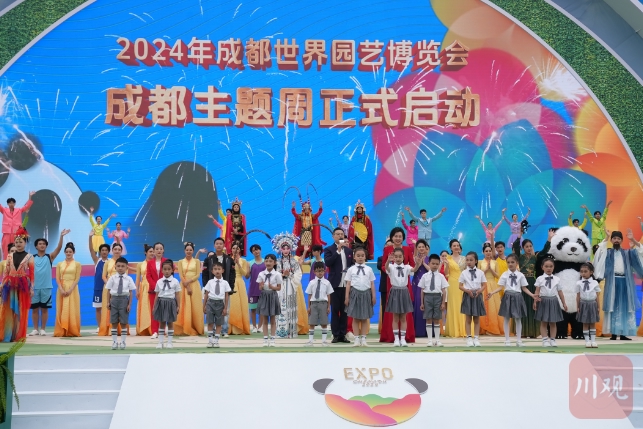 启动仪式上,“全域精品旅游线路线上电子地图”发布,为广大市民和游客介绍世园精品旅游线路。主持人邀请全体成都市民作为启动嘉宾,一起倒计时,2024年成都世界园艺博览会“成都主题周”正式启动。“成都主题周”以1场启动演出+6场“遇见世园”主题活动及配套活动拉开帷幕。