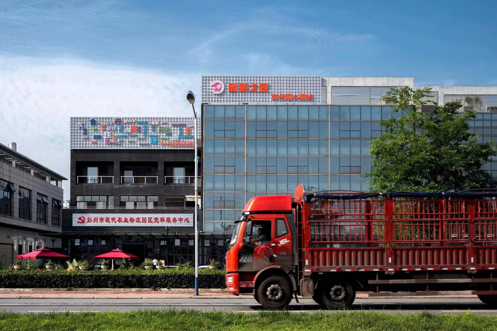 一位货车司机在彭州市蔬心驿站“暖心之家”修整好后驶向新的目的地,该暖心之家是川内知名的党建引领货车司机综合服务站点。