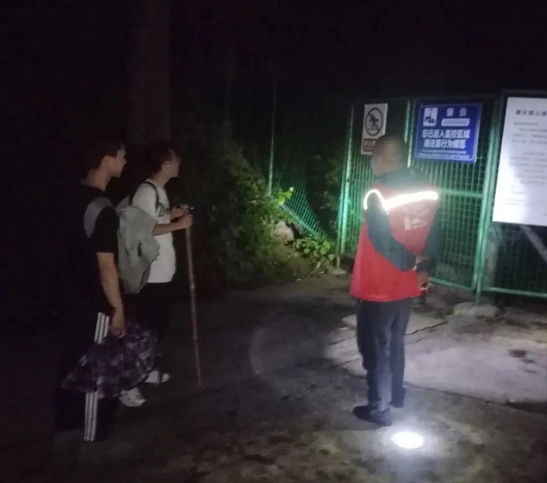峨眉山景区志愿者为夜间登山游客提供服务 峨眉山景区供图