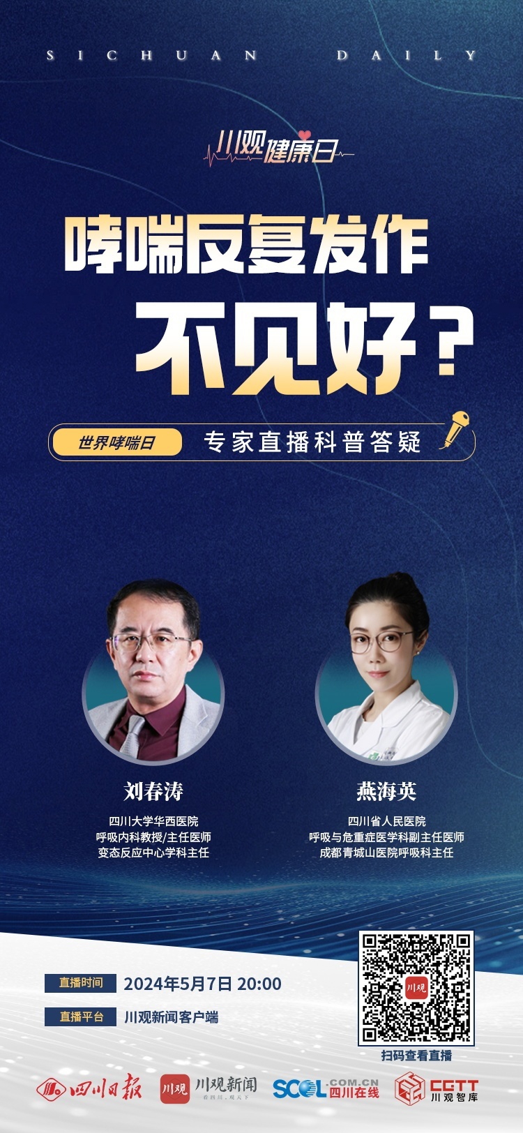 5月7日,川观新闻推出健康科普直播,邀请四川大学华西医院、四川省人民医院专家,就正确认识哮喘,科学防治哮喘等内容进行科普讲解,为大家答疑解惑。