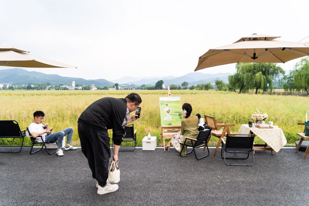 安徽省潜山市痘姆乡鞔鼓村的田野间,风格简约的南北咖啡馆吸引了不少村民和游客。今年“五一”假期期间,这家占地不到100平方米的小店单日最高营业额超过万元。