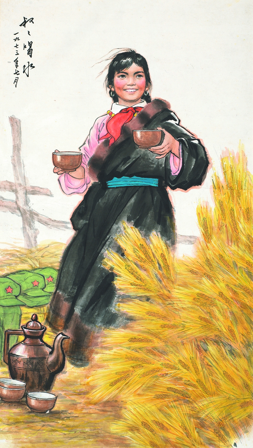 经过数年的社会劳动实践与写生、创作,他们明确地意识到,创作题材一定要基于生活,反映生活,画家的视线一定要向下,向人民,要在时代中、在社会中、在生活中描绘现实,创造自己的艺术美。现场展出的《叔叔喝水》,是朱理存在1973年创作的新尝试,展露新一代藏族同胞的风采,刻画一种生机勃勃的时代精神。画面中的女孩儿满面笑容,似乎满怀着坚定的信念,对祖国的未来充满了信心和期望,这也正是朱理存自己心情的释放。
