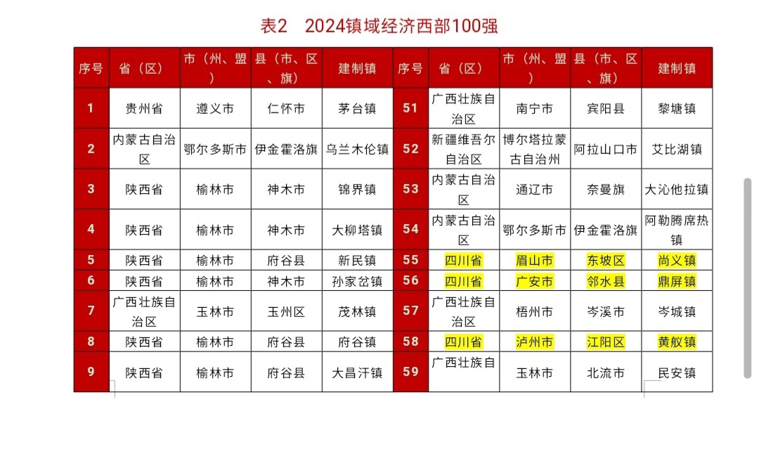 5月8日,赛迪工业和信息化研究院(集团)四川有限公司(简称“赛迪四川”)镇域经济研究中心重磅发布“2024镇域经济全国100强、500强暨中部100强、西部100强”研究成果,四川30个建制镇上榜。