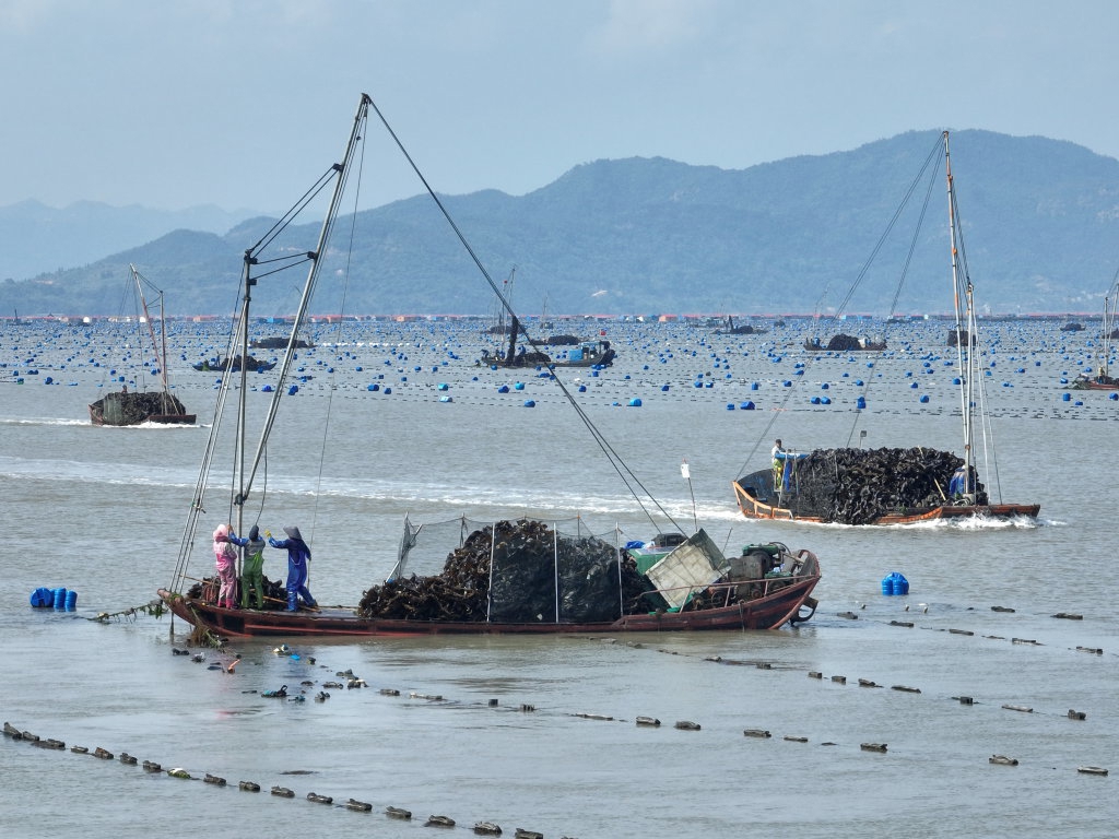 近日,福建省宁德市霞浦县迎来海带收获季。海带是霞浦县农业经济的传统主打产品之一,是当地不少农(渔)民家庭经济收入的主要来源,霞浦县于2009年被授予“中国海带之乡”称号。目前,全县养殖海带占海面积约30万亩,产值约40亿元。