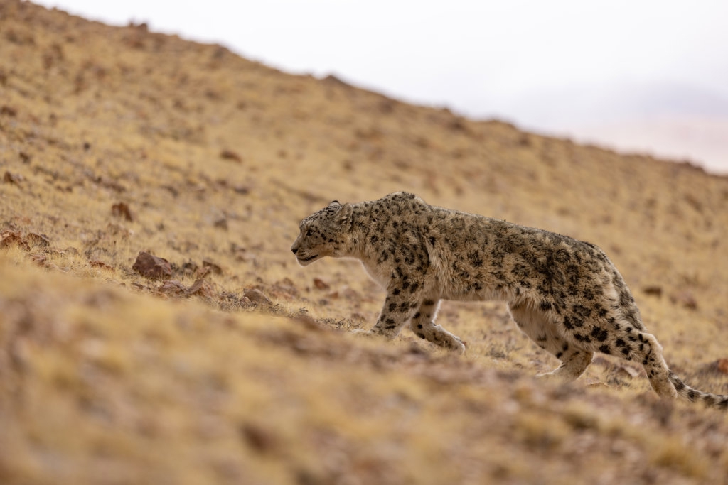 这是被放归自然的雪豹(5月7日摄)。