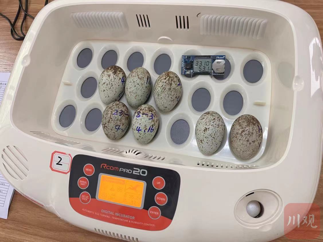 孵化箱内的朱鹮蛋。