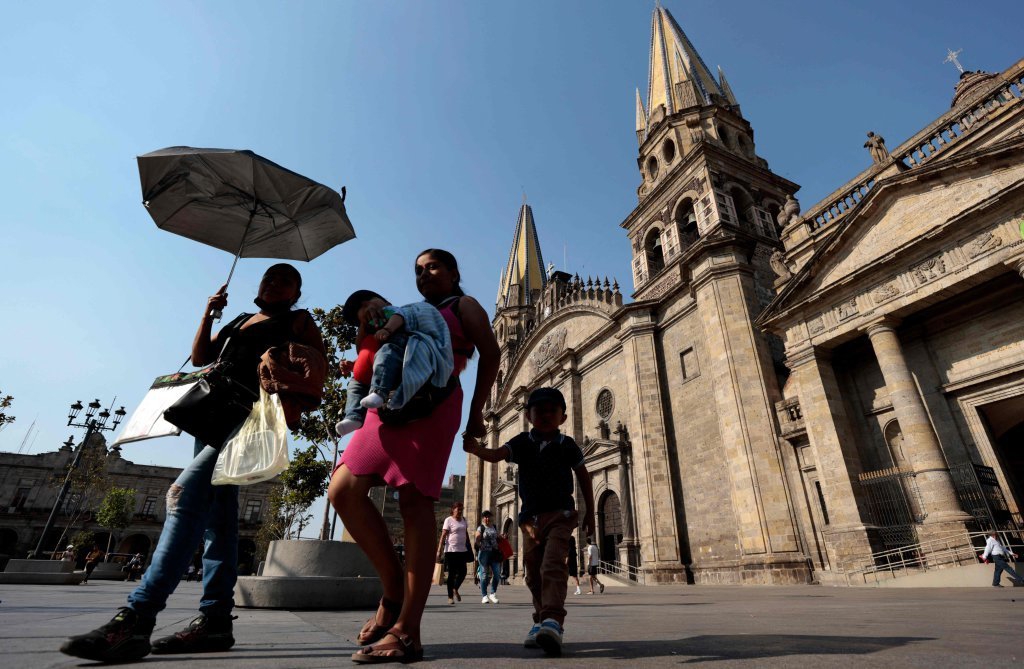 墨西哥近日遭遇极端高温天气,多个州的最高气温达到创纪录的45摄氏度。5月9日,行人在墨西哥哈利斯科州瓜达拉哈拉打伞遮阳。