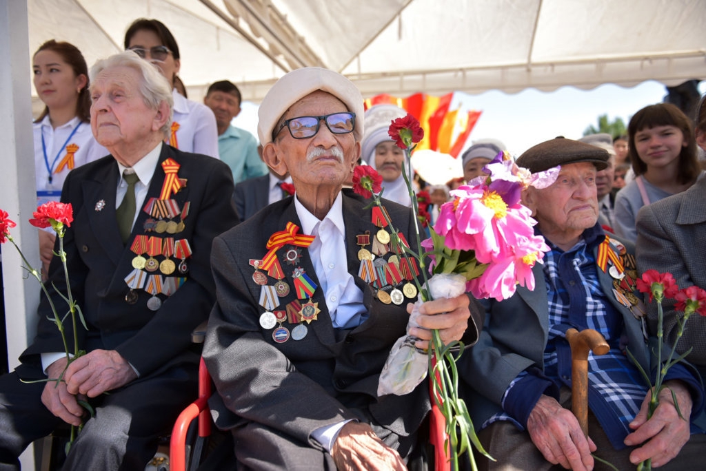5月9日,在吉尔吉斯斯坦首都比什凯克,老兵参加胜利日纪念活动。