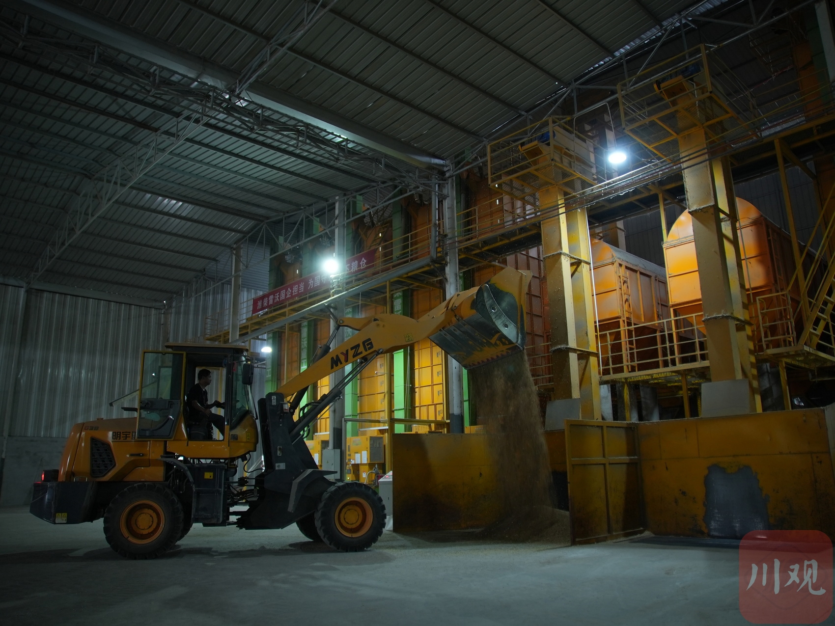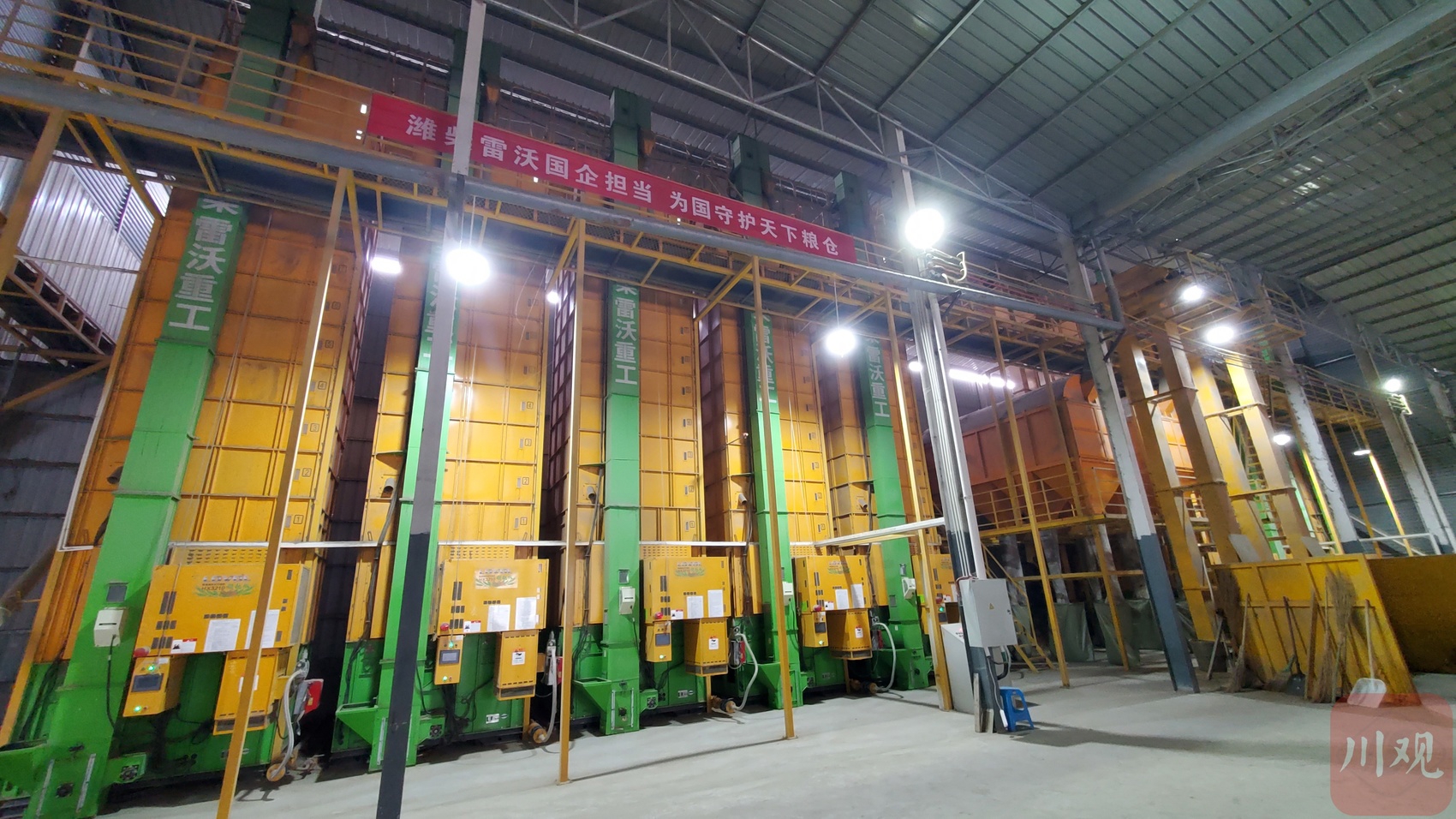绿之粮新繁粮食产业服务中心正在对刚收获的小麦烘干开展作业。