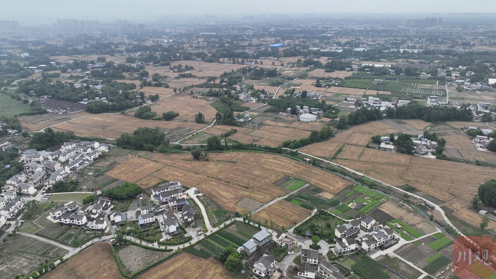 5月11日清晨,成都市新都区新繁街道黄泥村的天空飘起了小雨。顺着道路前行,黄色的麦田和绿色的秧田点缀其间。