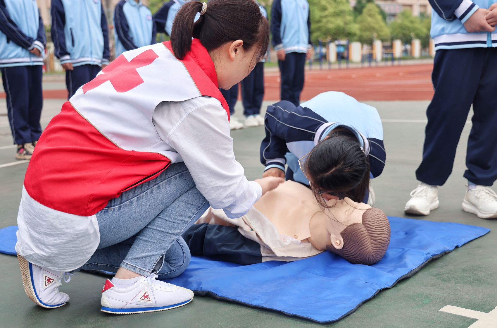 除了演练外,活动现场还设置互动体验区,师生们学习心肺复苏技巧,体验灭火器使用,感受消防水枪灭火出水时的压力,沉浸式学习应急安全知识。