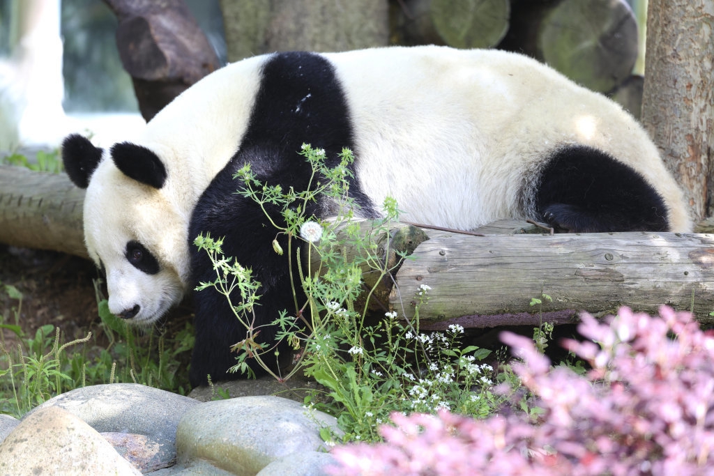 在南京汤山紫清湖野生动物世界,憨态可掬的大熊猫乐享初夏阳光,吸引大批“熊猫粉”前来看望。
