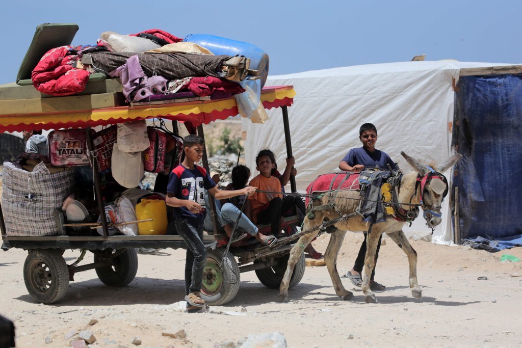 5月12日,离开拉法的巴勒斯坦人驾着驴车抵达汗尤尼斯。