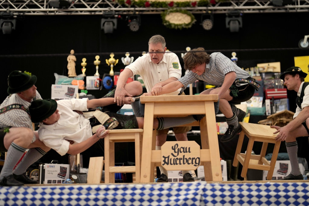 5月12日,参赛者在德国贝恩博伊伦参加“手指摔跤”赛。