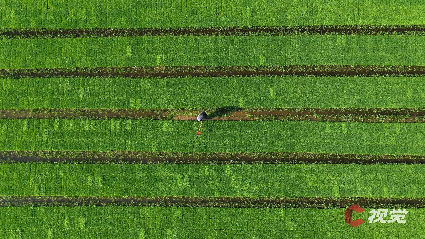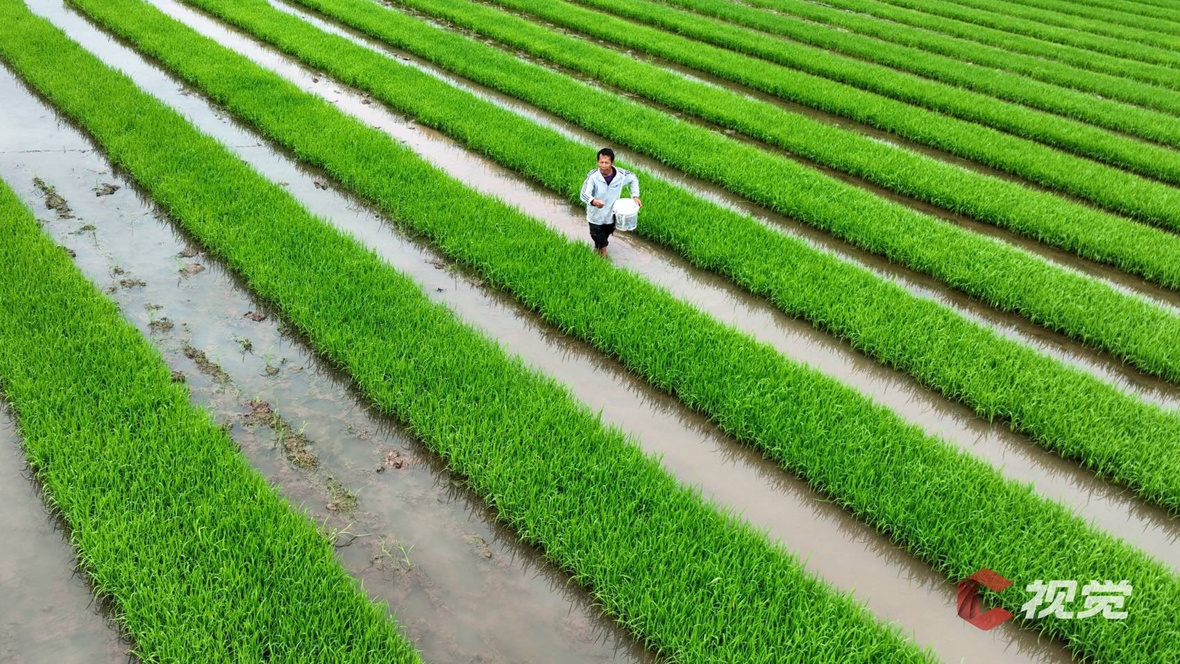 眉山市仁寿县彰加镇礼周村,村民在田间为水稻秧苗施肥。 C视觉摄影师 潘建勇 摄