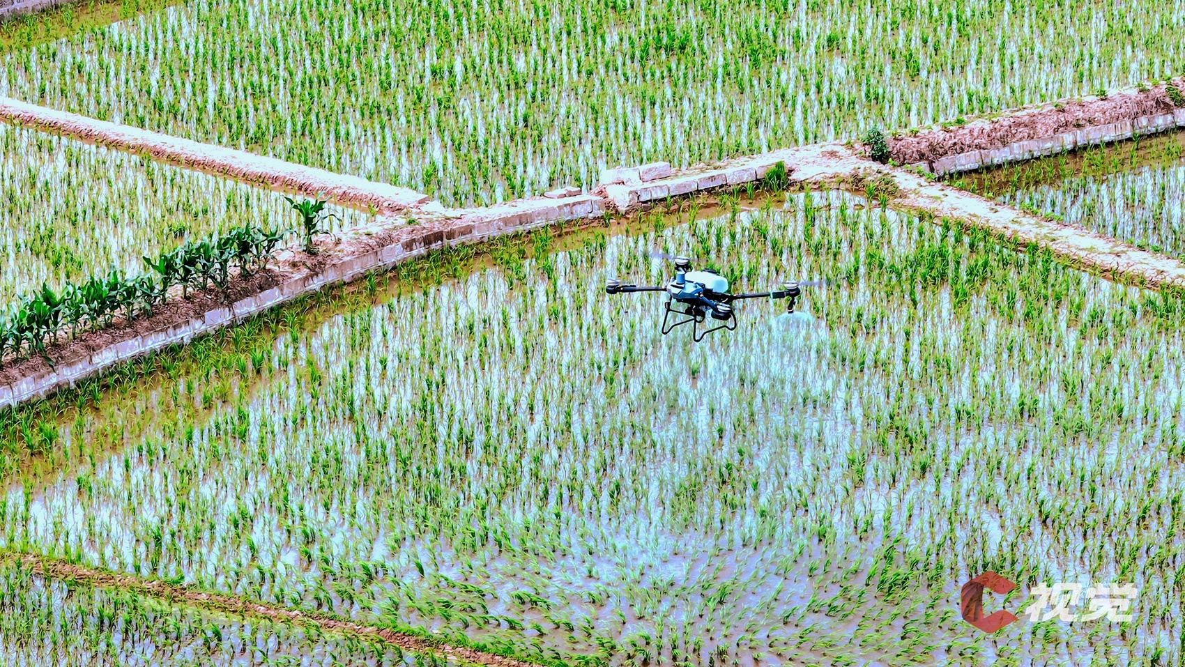 泸州市合江县望龙镇圣登寺村的高标准农田基地,工作人员操作农用无人机进行喷药作业。 C视觉摄影师 李贵平 摄