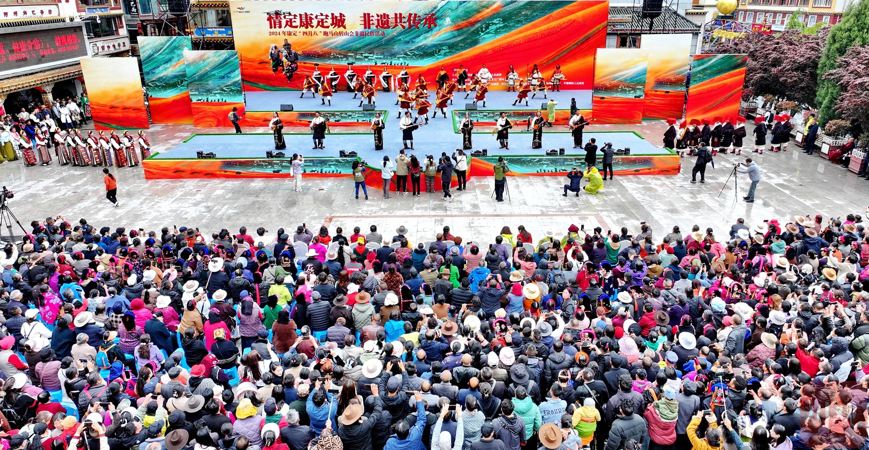 5月15日上午10时,随着歌舞《情舞遗韵》在甘孜州康定市情歌广场精彩上演,“情定康定城 非遗共传承”——四川省甘孜州康定市2024年“四月八”跑马山转山会非遗民俗活动正式在文艺汇演中拉开序幕。康定市当地群众与来自全国各地乃至海外的游客朋友共同欣赏了这场精彩的演出。