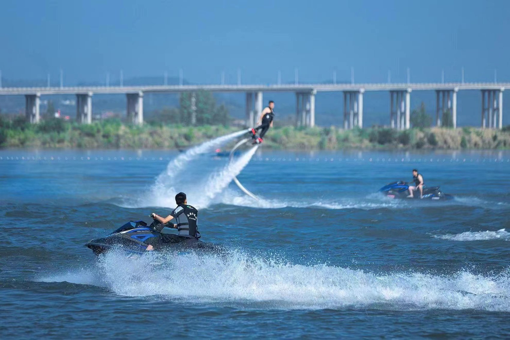 位于南充黄金江岸度假区,惊险刺激的水上项目吸引人们休闲消费。南充市文广旅局供图