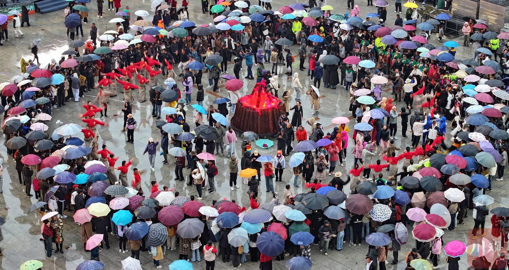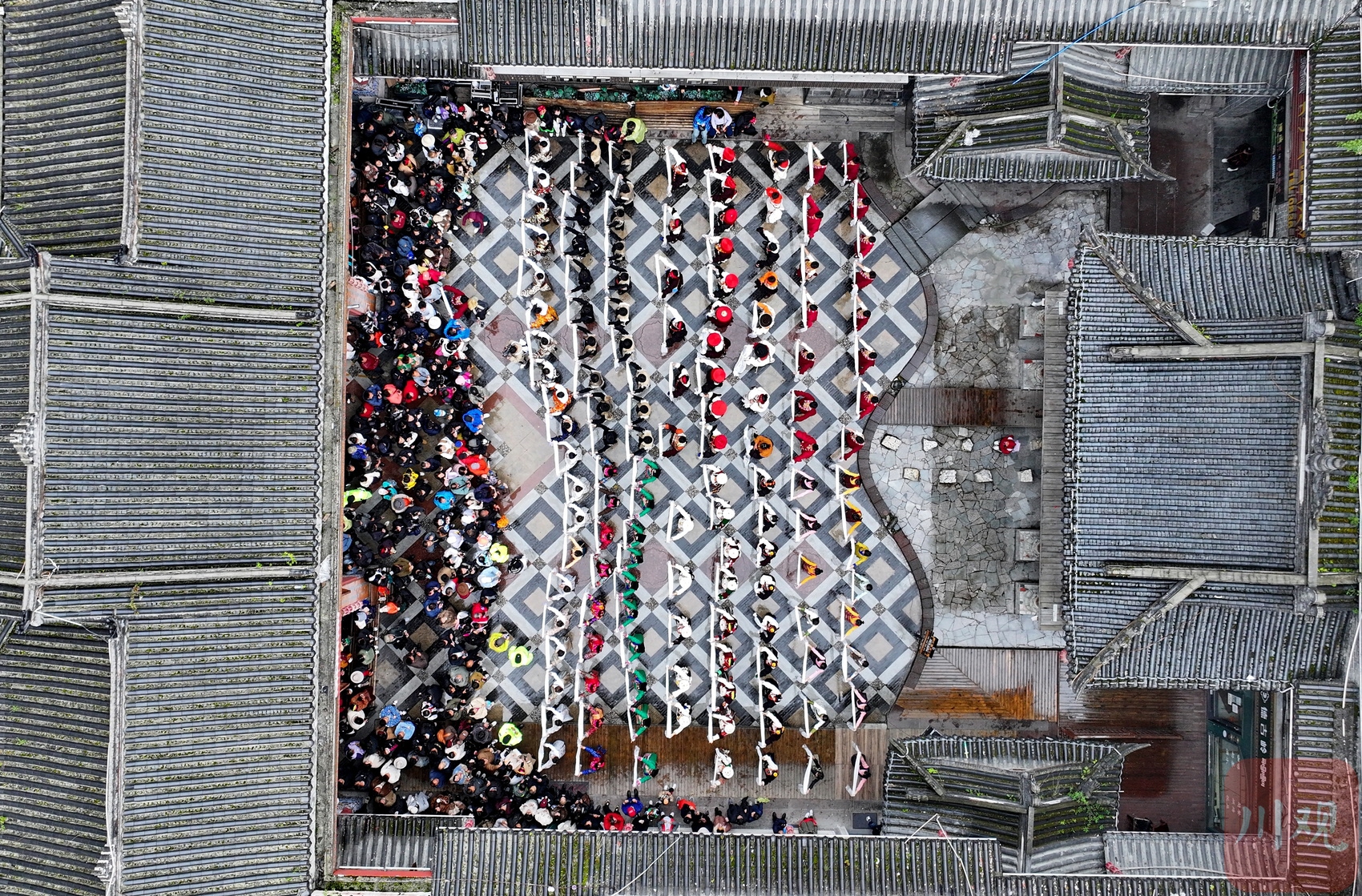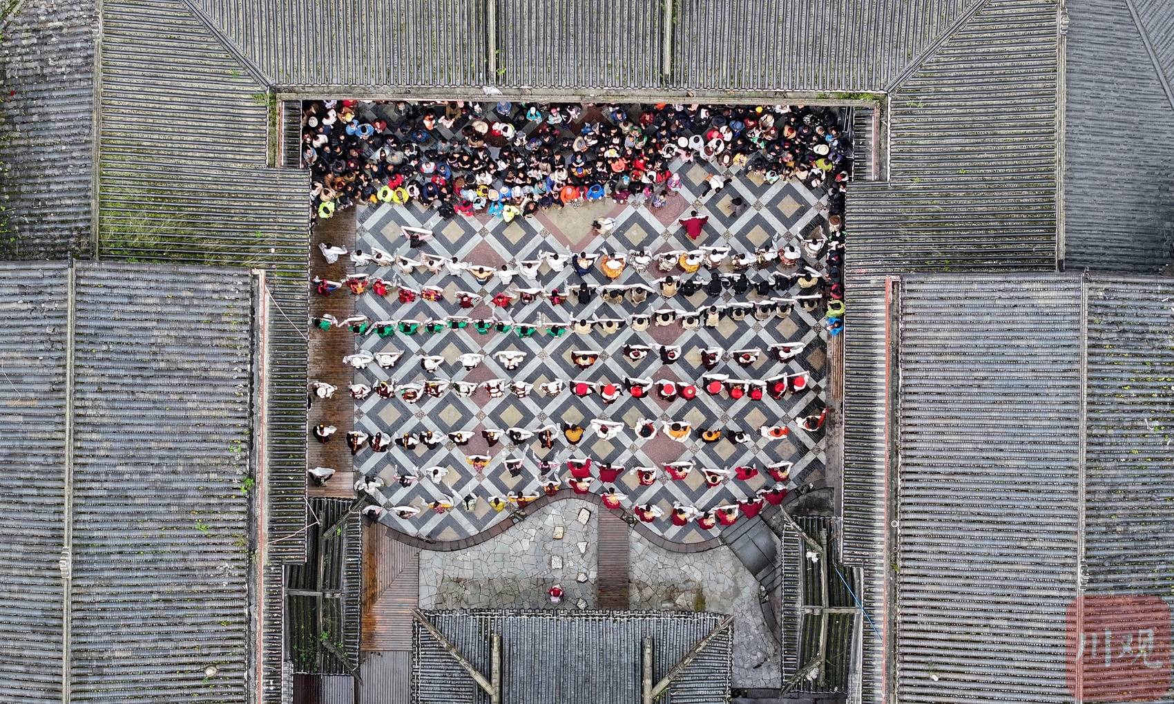 5月15日,空中俯瞰在甘孜州康定市举行的非遗民俗服饰文化秀。