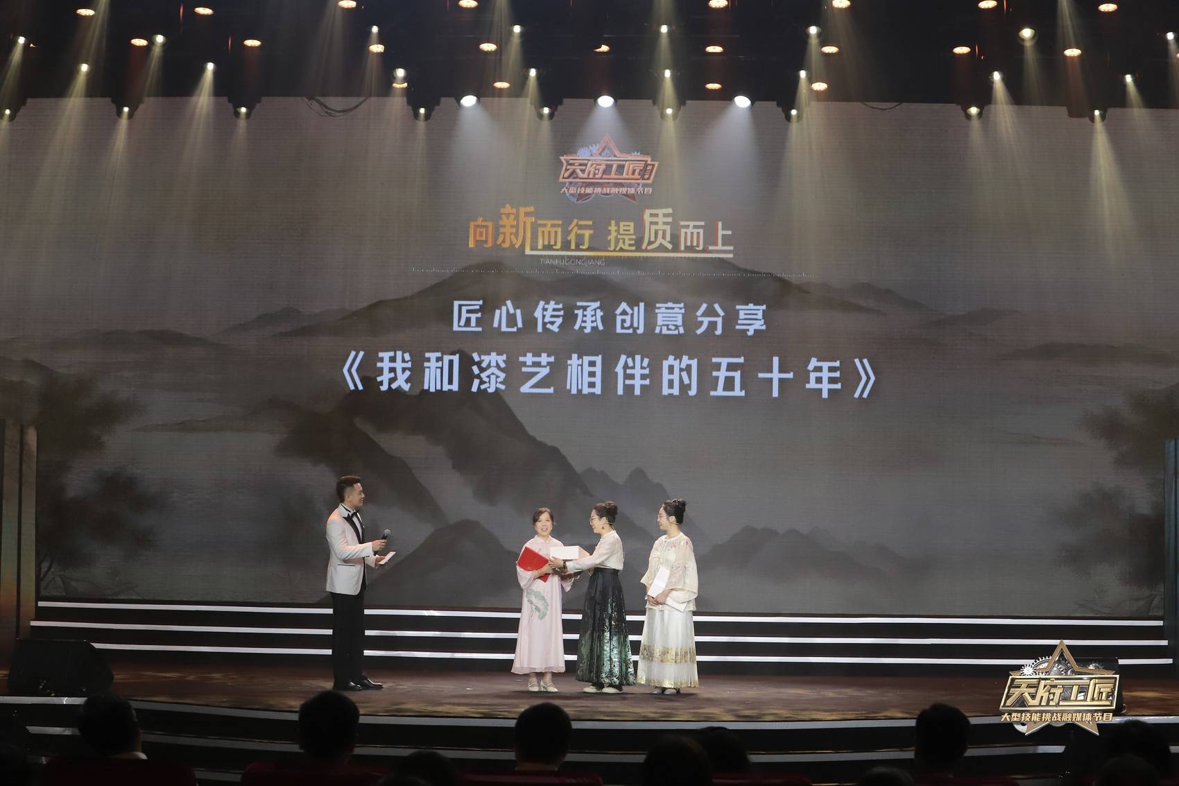 国家级非物质文化遗产项目“成都漆艺”代表性传承人尹利萍上台分享了《我和漆艺相伴的五十年》,讲述她五十年来“择一事终一生”,50年只干一件事情的职业幸福感。西南石油大学水下仿生机器人青年科技创新团队负责人李亚鑫带着团队研发的仿生机器人“小新”上台进行了新质赋能创意分享《我和机器人勇闯水世界》,生动描绘新质生产力的无限可能。