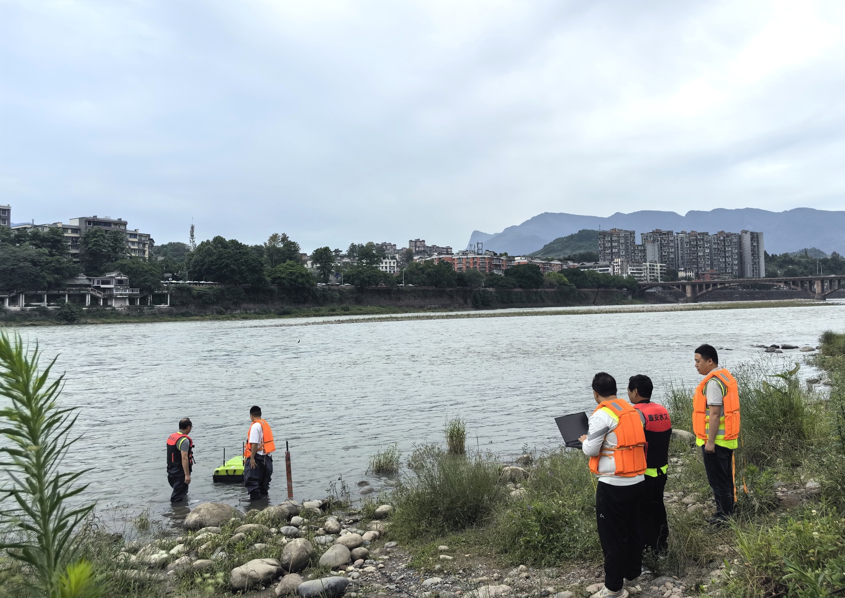 水文工作人员正用无人船搭载ADCP对青衣江干流开展流量测验。省水文中心供图