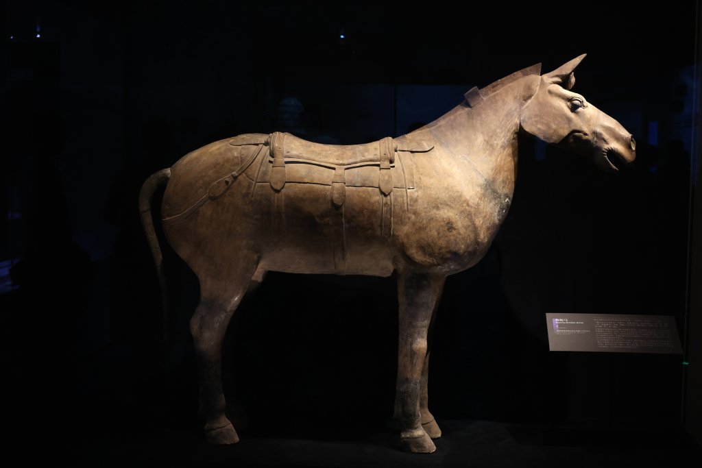 这是在陕西历史博物馆秦汉馆展出的秦陶鞍马(4月15日摄)。