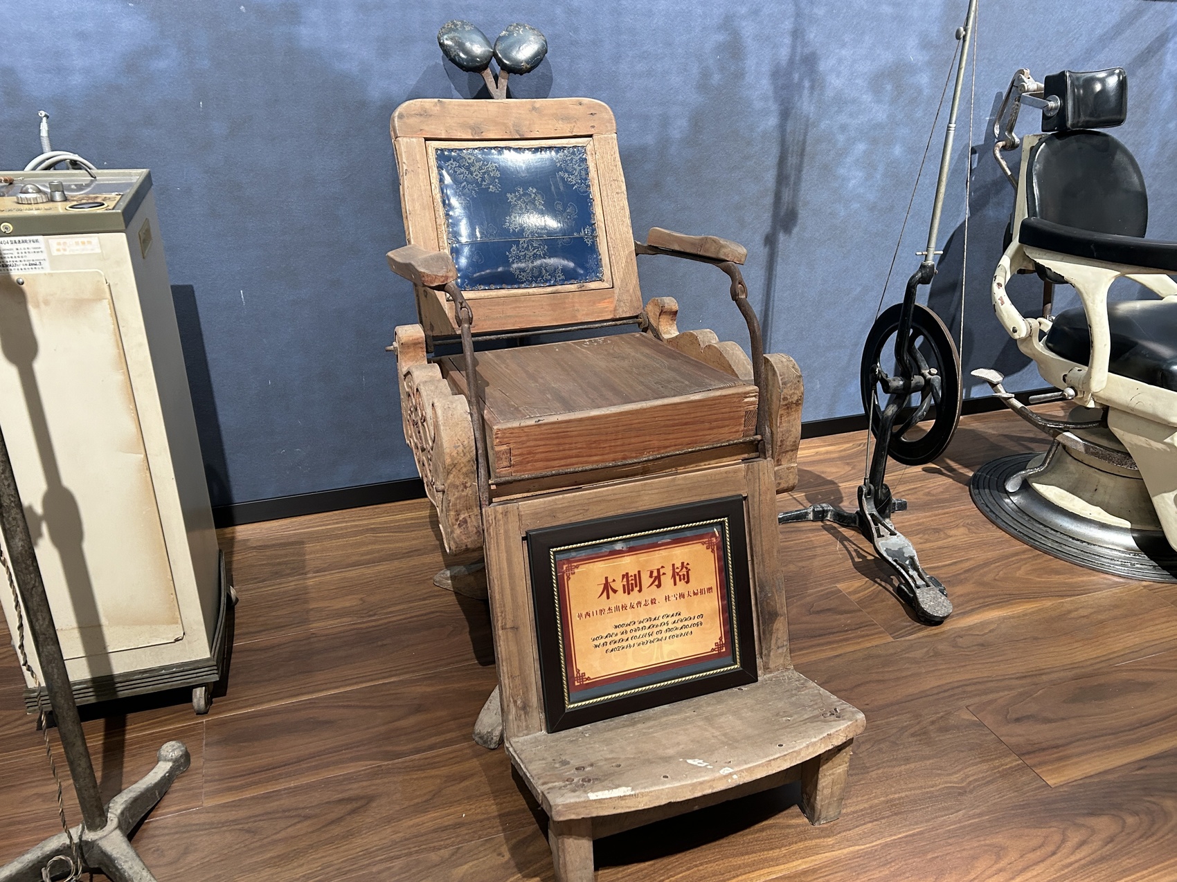 继续走进华西口腔医学博物馆的二楼展厅,这里展示了一系列更新迭代的牙椅,从木制到金属,再到可调节的“智能”椅,生动地展现华西口腔医疗技术的进步。此外,还有用于诊治的各种仪器和材料的变迁。