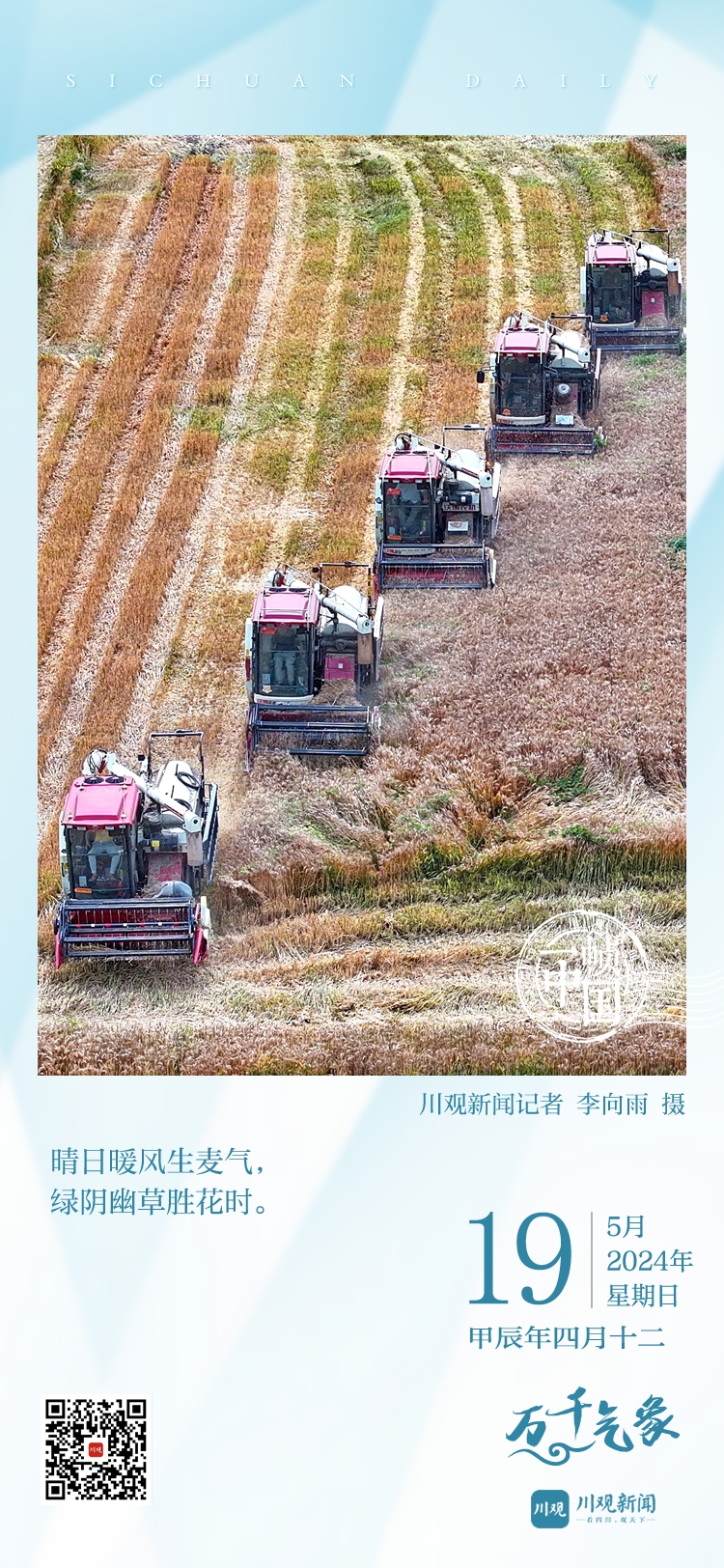 进入5月,四川迎来“三夏”关键期。今天的《一帧中国》,一起来看田间地头紧张忙碌的夏收情况。