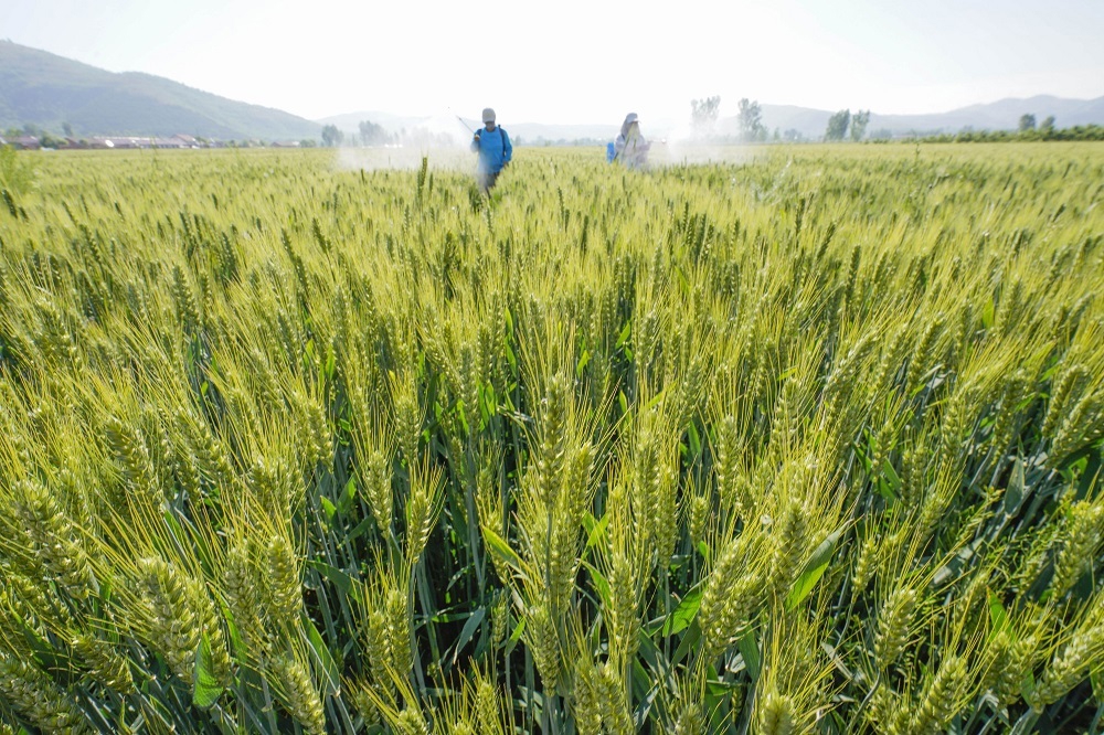 5月20日,河北省遵化市刘备寨乡农民在麦田进行植保作业。当日是小满节气,各地农民抢抓农时忙农事,田间地头一派繁忙景象。