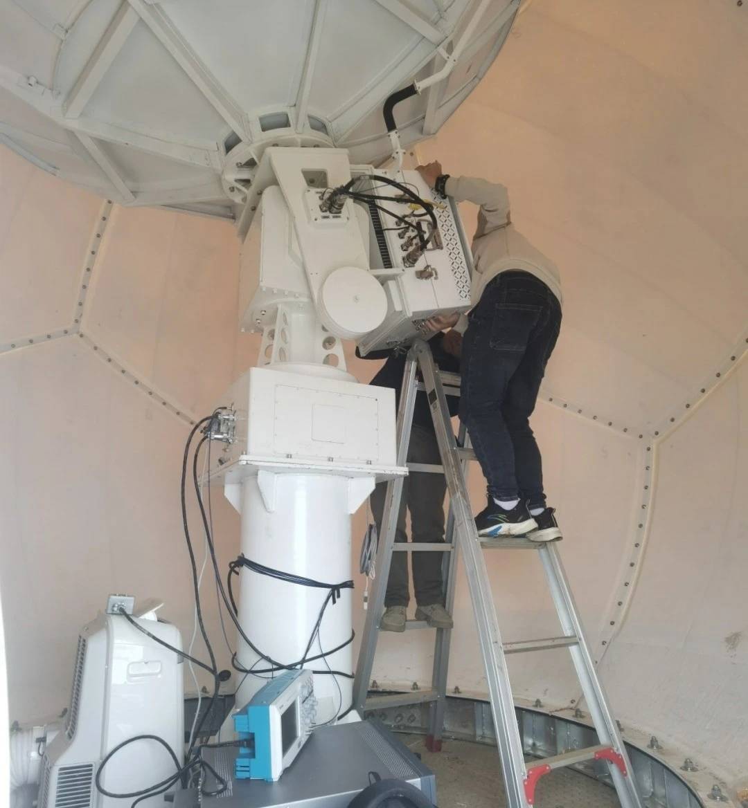 今年汛期前,泸定对县内的 X 波段双偏振天气雷达进行了常态化汛前检查。(泸定县自然资源局 供图)