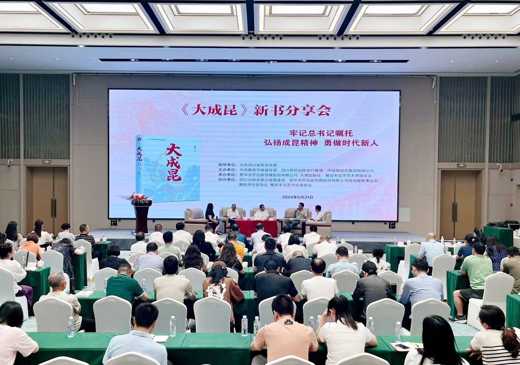 5月21日,“中国好书”最新月榜图书《大成昆》新书分享会在雅安举行。《大成昆》作者陈果,四川师范大学博士生导师蔡方鹿,中铁隧道局集团有限公司成昆铁路扩能改造项目部副部长郑冬冬等分别讲述了自己与成昆铁路的故事以及对作品的感受。