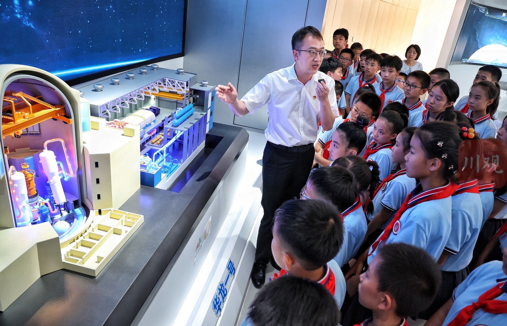 中国核动力研究设计院设计所二室副主任邱阳向青少年讲解“华龙一号”