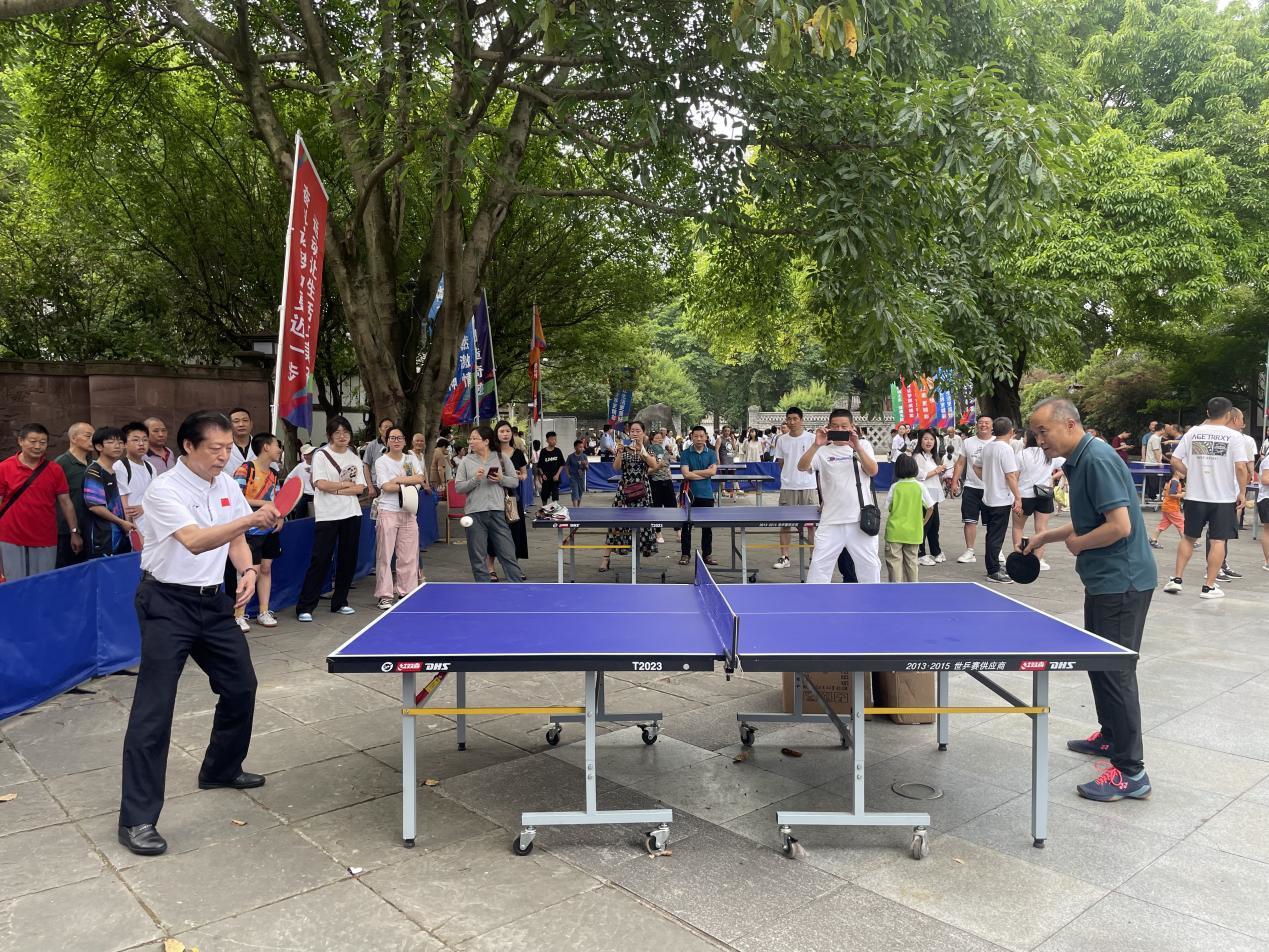 首届“国球进公园”户外乒乓球系列赛事四川赛区启动站现场。图自四川省乒乓球协会