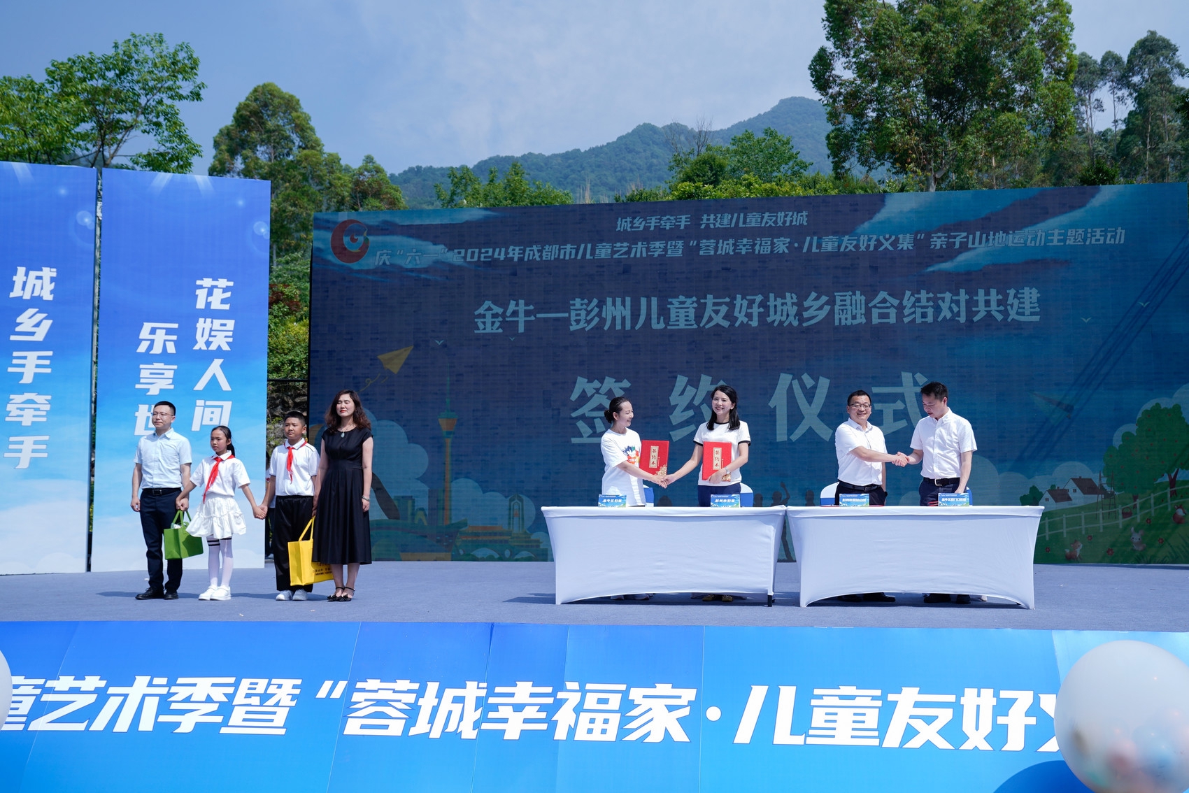 为庆祝成都世园会举办、迎接第74个“六一”国际儿童节到来,5月26日,“城乡手牵手 共建儿童友好城”庆“六一”2024年成都市儿童艺术季暨“蓉城幸福家·儿童友好义集”亲子山地运动主题活动在成都市家庭教育基地——彭州市葛仙山镇蚂蚁家森林自然教育基地举行。