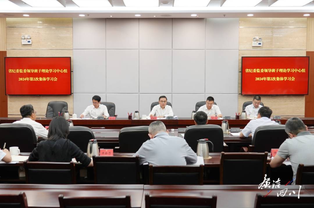 5月28日,省纪委监委召开领导班子理论学习中心组集体学习会,围绕“认真学习贯彻党的群众纪律,扎实开展群众身边不正之风和腐败问题集中整治”主题开展集体学习研讨。省委常委、省纪委书记、省监委主任廖建宇主持会议并讲话。