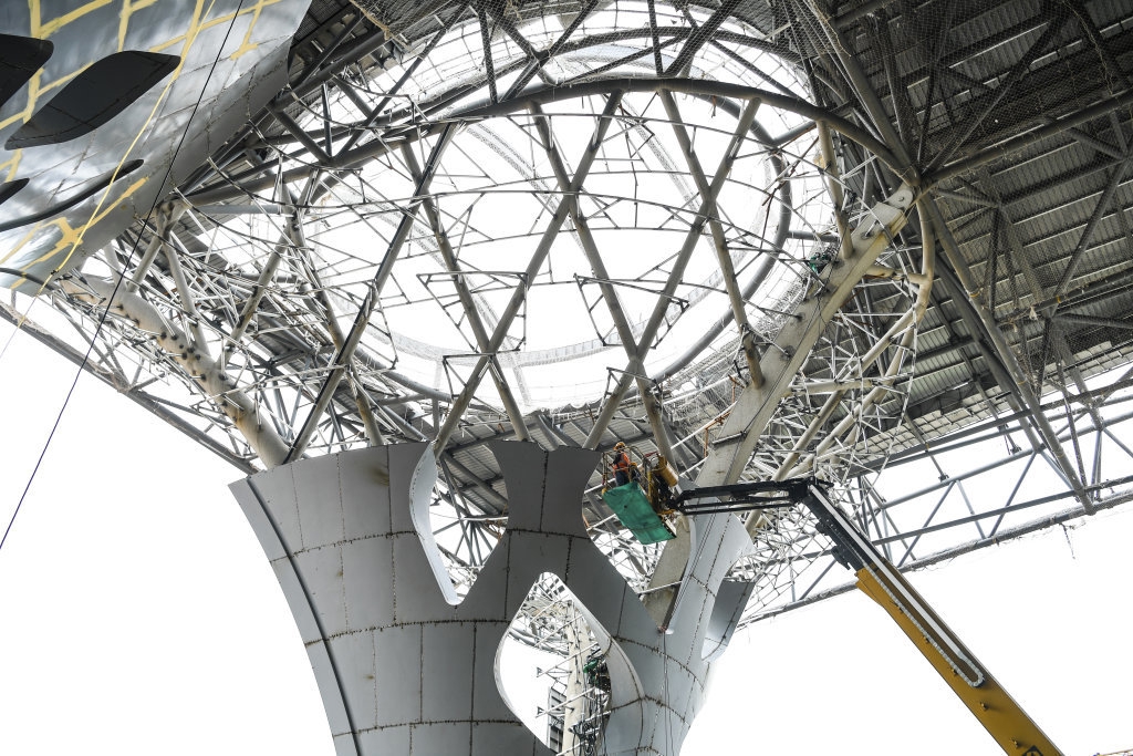 西部地区最大高铁枢纽站钢结构屋顶完工