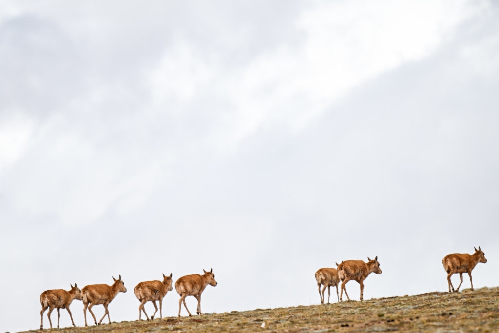 5月27日,藏羚羊在可可西里五道梁地区迁徙。