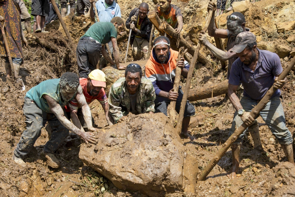 这张联合国开发计划署提供的照片显示的是,5月27日,人们在巴布亚新几内亚恩加省穆利塔卡地区发生山体滑坡的区域组织搜救。