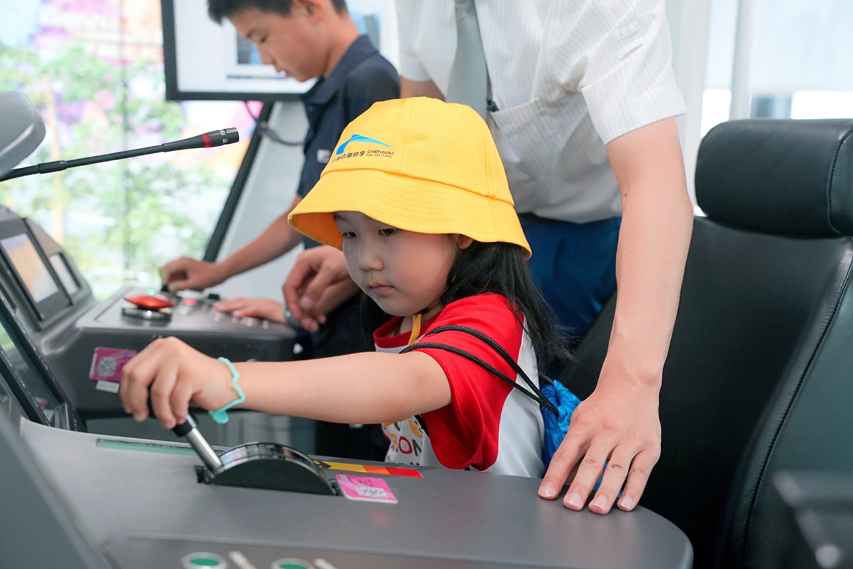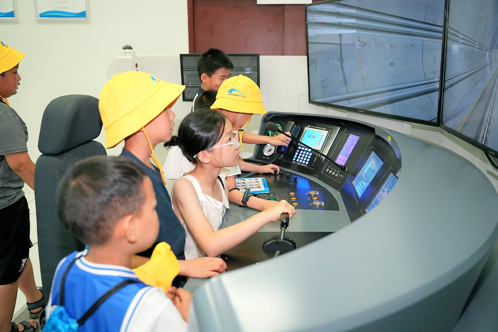 在模拟站台层,小朋友们化身站务员、车辆检修员等,体验车站接发车作业、站台门故障处理、车辆设备检修等地铁工作内容;在地铁模拟驾驶室内,小朋友们兴奋地坐上驾驶座,手握操作杆,跟随着导师的指令,时而加速前进,时而减速慢行,身临其境体验驾驶电客车。