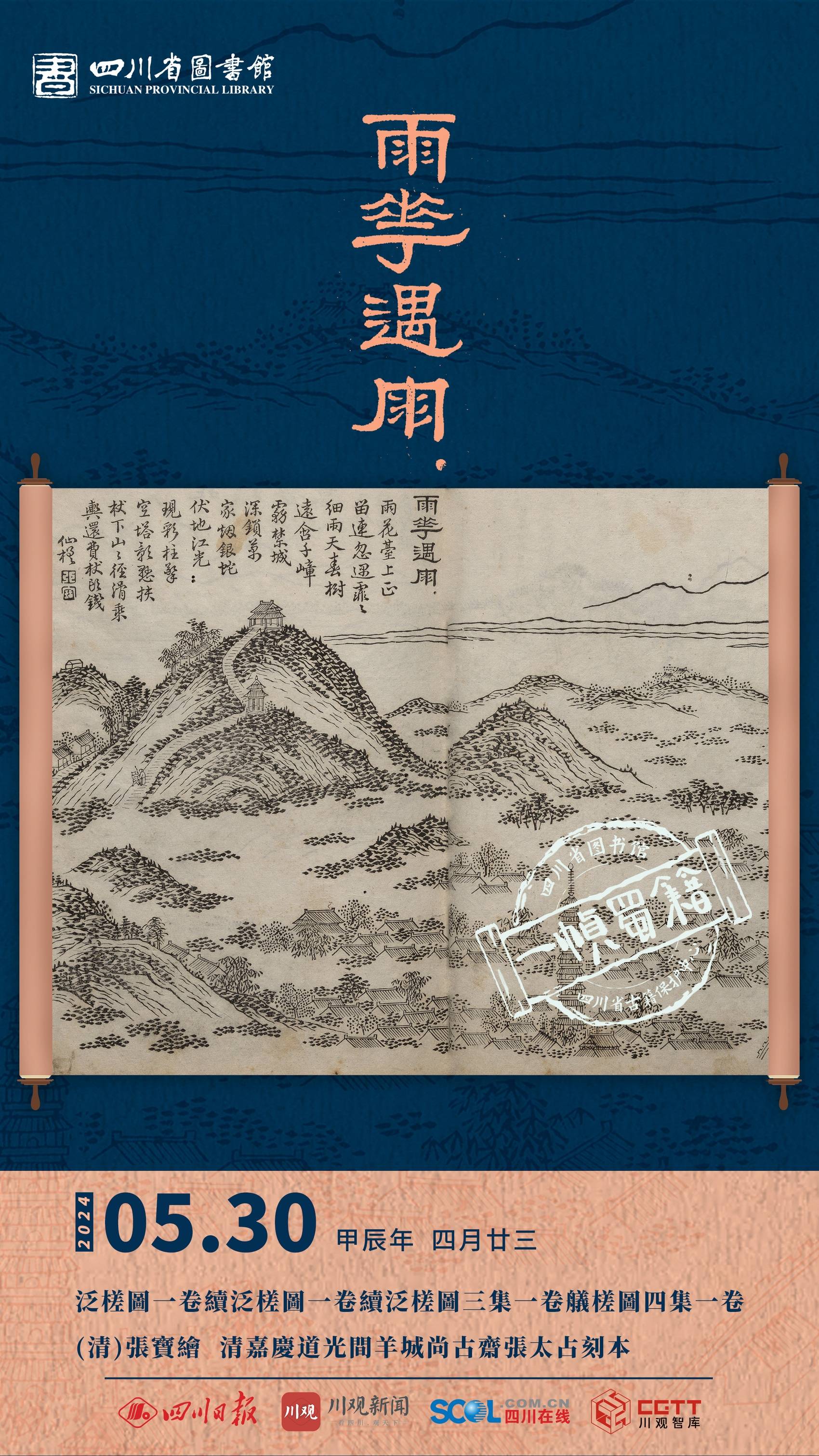《泛槎图》共有6集,包含100余张图像,每一集图像和题跋的创作过程都有所不同。《泛槎图》的创作其实经历了三个阶段:张宝亲绘沿途山水景观;文士阅后题作跋尾;纪游图像与题跋文章被交付于名家刊印。5月30日,一帧蜀籍带你走进《泛槎图》,赏雨花等雨,看山色空蒙。