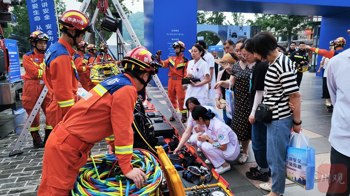 在德阳市钟鼓楼广场,记者看到,活动现场设置了包括安全生产月主题图片展、应急装备展、VR体验区、应急逃生演练区、安全宣传咨询点位区、有奖竞答答题区等多个体验互动项目,吸引大批市民围观体验。