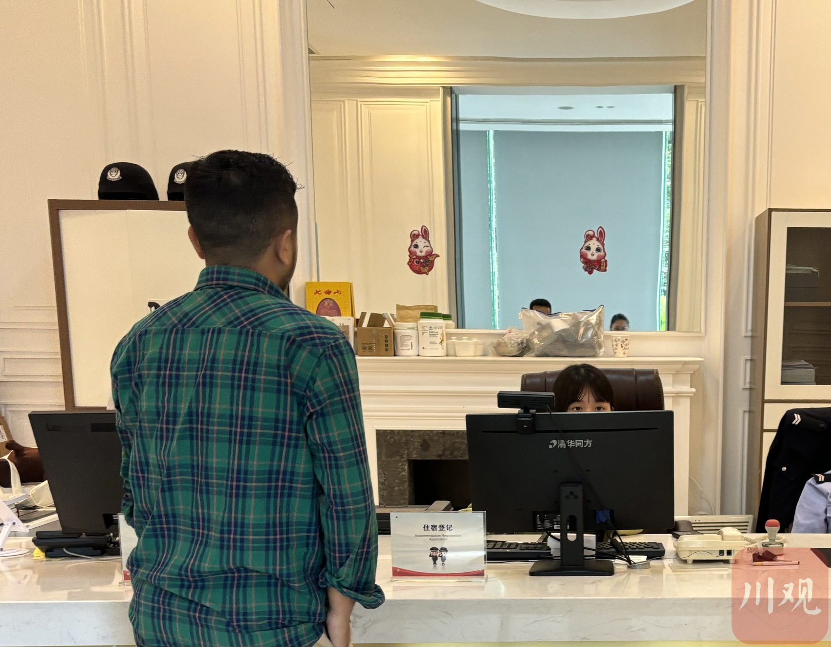 5月29日下午,成都市武侯区的桐梓林国际社区邻里中心,来自孟加拉国的Peter走进位于这里的成都公安出入境服务站,几分钟后就办理好了住宿登记,“方便!”他伸出大拇指。