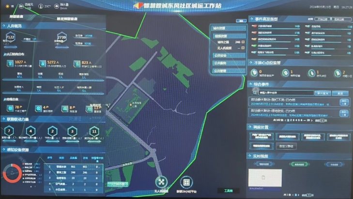 在东风社区城运工作站可视大屏上,汇集了小区、汽修喷漆行业、再生资源回收点位、有限空间、群租房、易涝点位、餐饮单位燃气安全等7大场景。