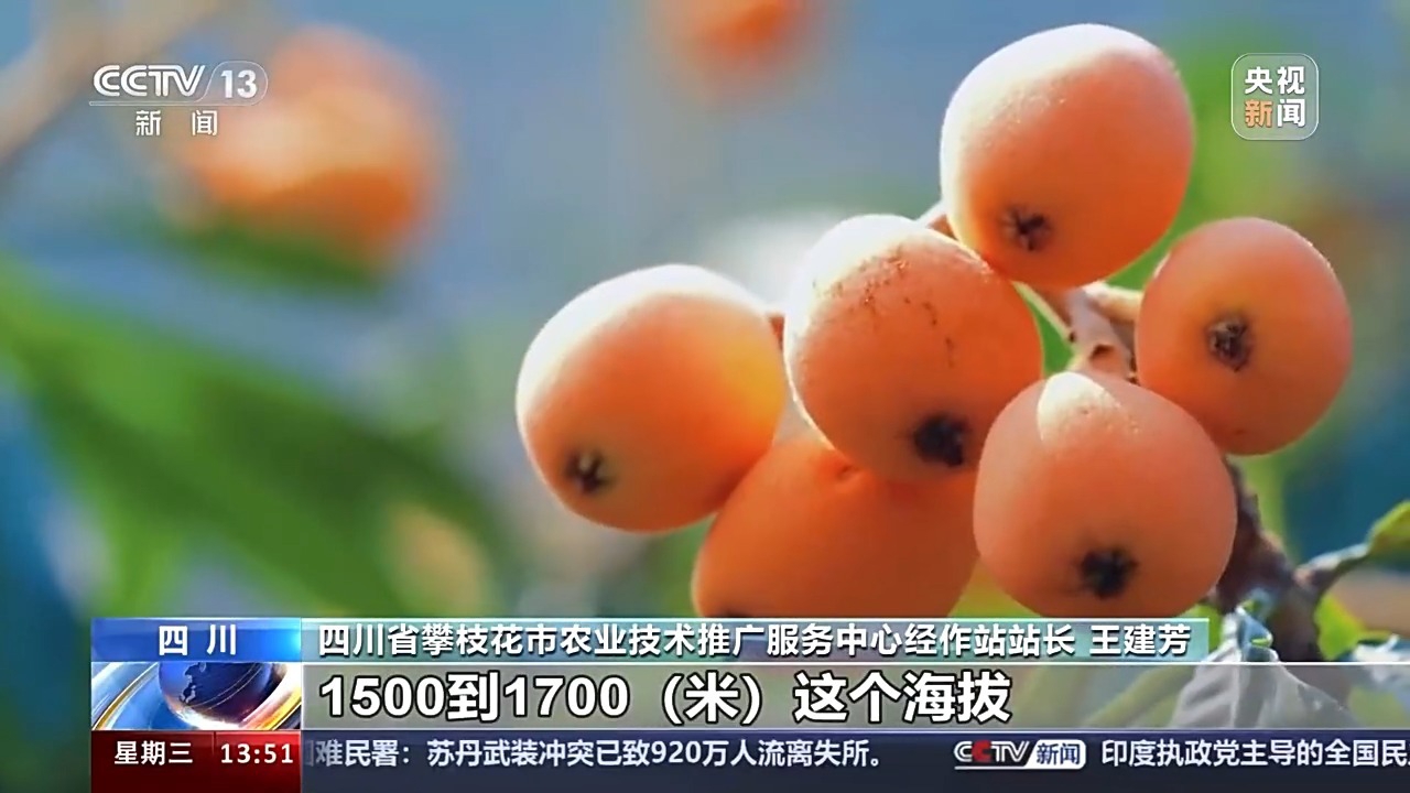四川省攀枝花市农业技术推广服务中心经作站站长 王建芳:河谷到这个中山地区1500米以下,我们主要布局热带水果产业,像我们的芒果产业;海拔1500米到1700米的中山区我们布局枇杷产业;1700米以上,由于海拔比较高,气温比较低,我们就布局温带的水果产业,所以形成了一个从低海拔到高海拔的立体产业带的布局。