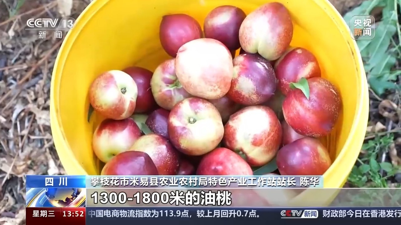 攀枝花市米易县农业农村局特色产业工作站站长 陈华:3—5月份上市的是我们布局在中低海拔地区的1300—1800米的油桃;在1600—1900米的地方布局黑美人桃,5—6月份上市;在海拔1800—2400米布局雪桃,它在7—8月份上市;在海拔2000米左右布局冬桃,在11—12月份上市。这样就保证了米易县全年都有鲜桃的供应,避免了桃子集中扎堆大量上市。