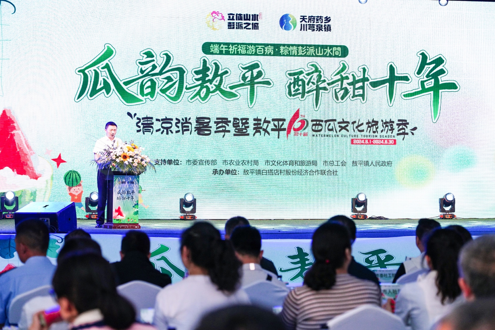 6月6日傍晚,彭州清凉消暑季暨敖平第十届西瓜文化旅游季开幕,本次活动以“瓜韵敖平 醉甜十年”为主题,回顾了十年来,彭州以瓜为媒,以瓜会友,对西瓜产业持续进行政策扶持、技术推广、品牌建设,不断探索用西瓜这张农业名片撬动农文旅产业融合发展。