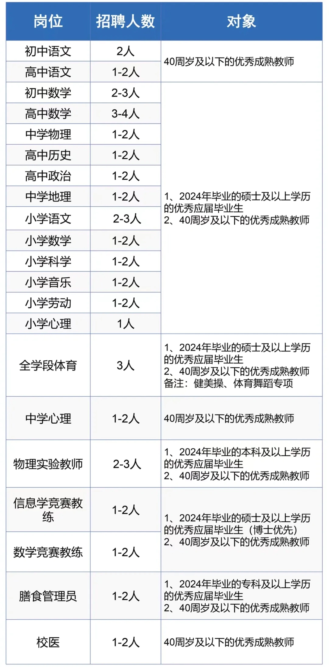 2. 以上人才引进需求为中学部和小学部总需求,应聘人员须服从学校工作安排。