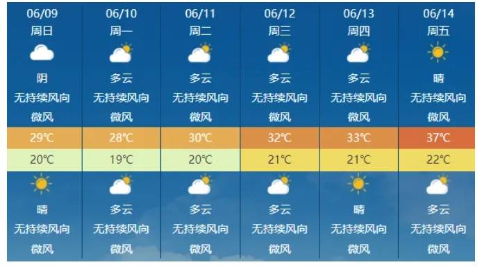 9日到10日,成都转为多云间阴天气,最高气温也将升至30℃、31℃。总的来说,成都假期天气不错,适宜出行。