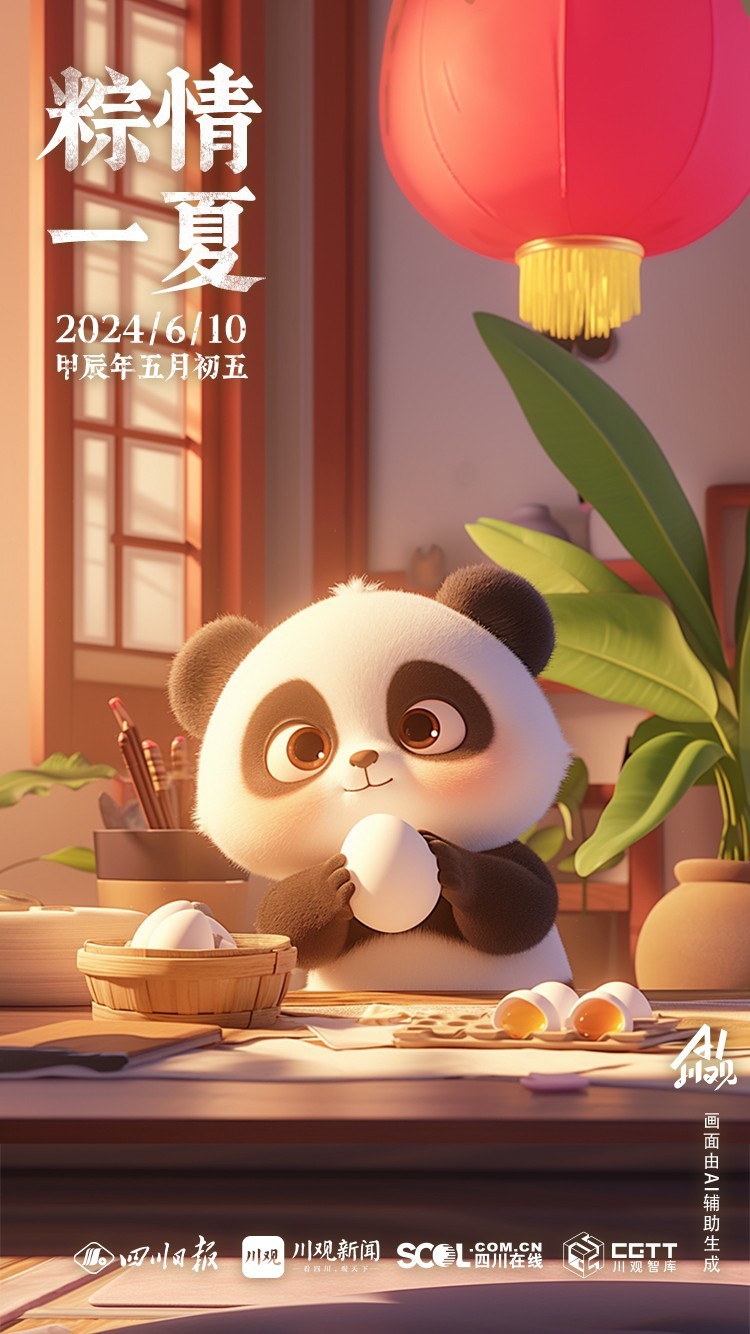 端午节,是中国首个入选世界非遗的节日。每逢端午,民间有吃粽子、挂艾蒲、佩香囊等传统习俗。川观新闻AI川观工作室,特别推出AI海报,跟熊猫滚滚一起感受端午习俗吧!